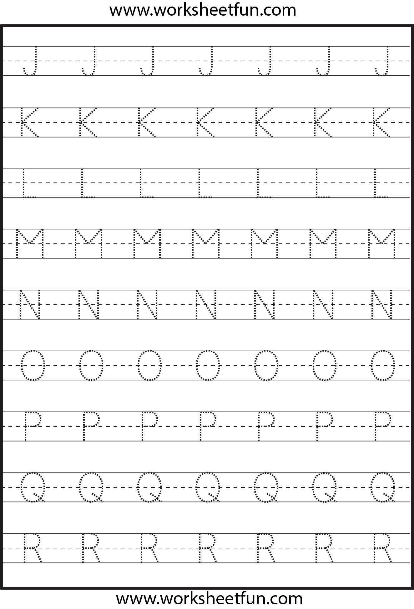 Tracing – Uppercase Letters – Capital Letters – Worksheet J-R – Download