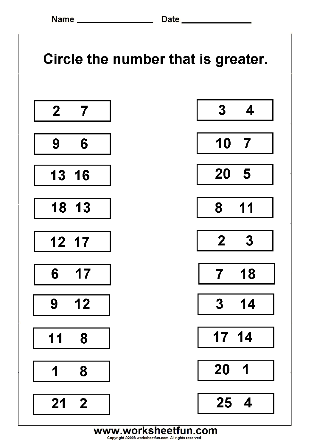 Greater and smaller number – Worksheet 1 – Download
