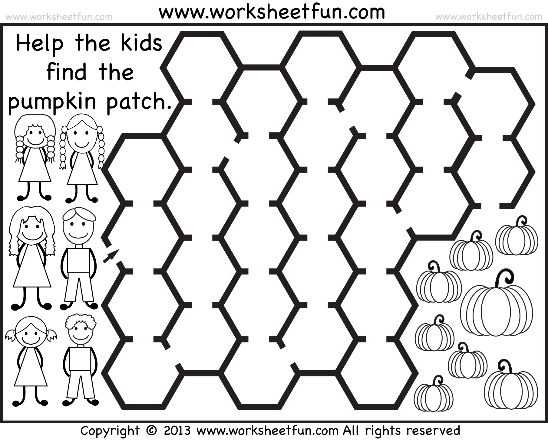 Hexagon shape maze – Pumpkin Patch Maze – Halloween Worksheets